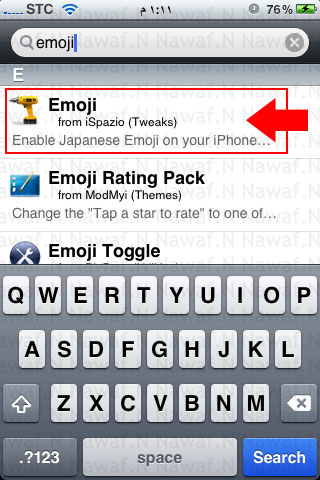 الأن بعد اضافة السورس نروح لمحرك البحث ونبحث عن كلمة Emoji