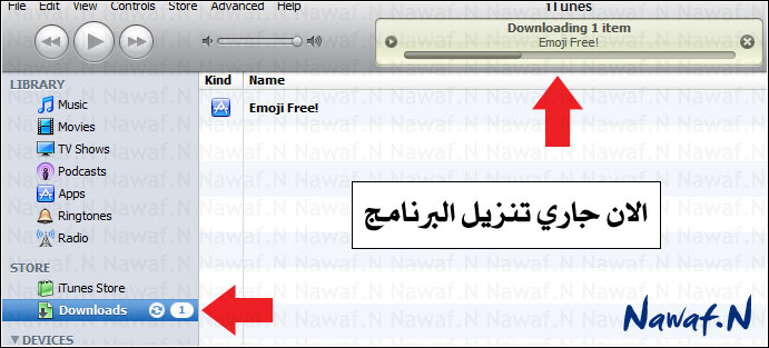 وهنا في الصورة جاري تحميل البرنامج على الايتونز