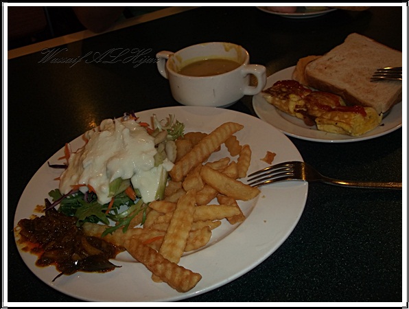 نزلنا للفطور وكانت صاله ضخمه تنقسم لقسمين .
