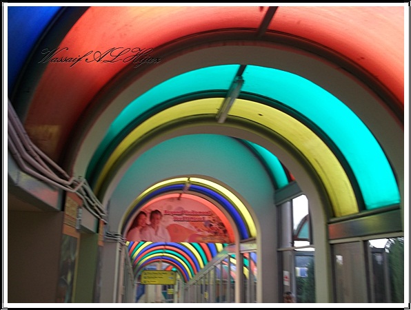 ثم الى الممر الذي يربط محطة الباصات بفندق الفيرست وورلد