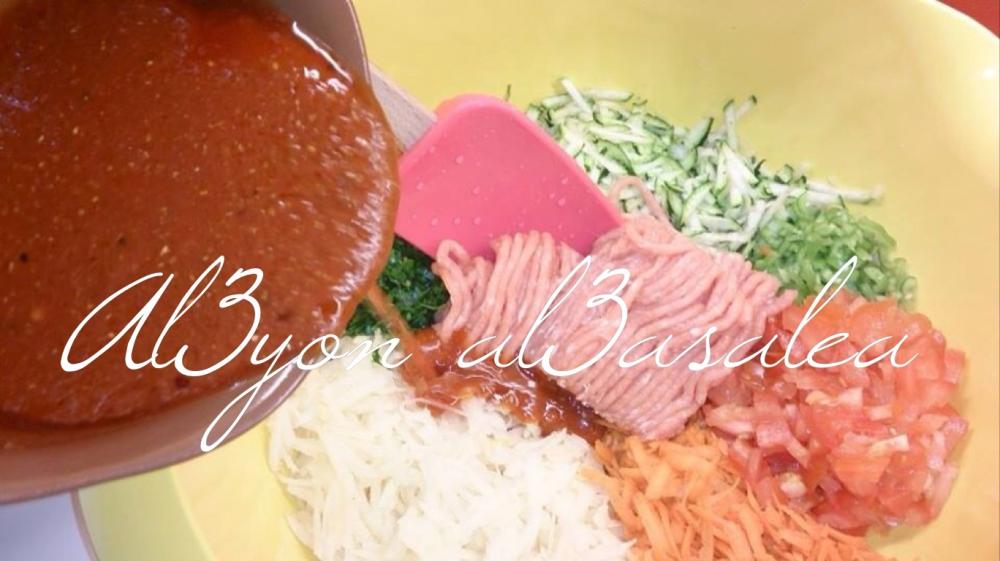 2- نخلط معجون الطماطم، زيت زيتون، التوابل