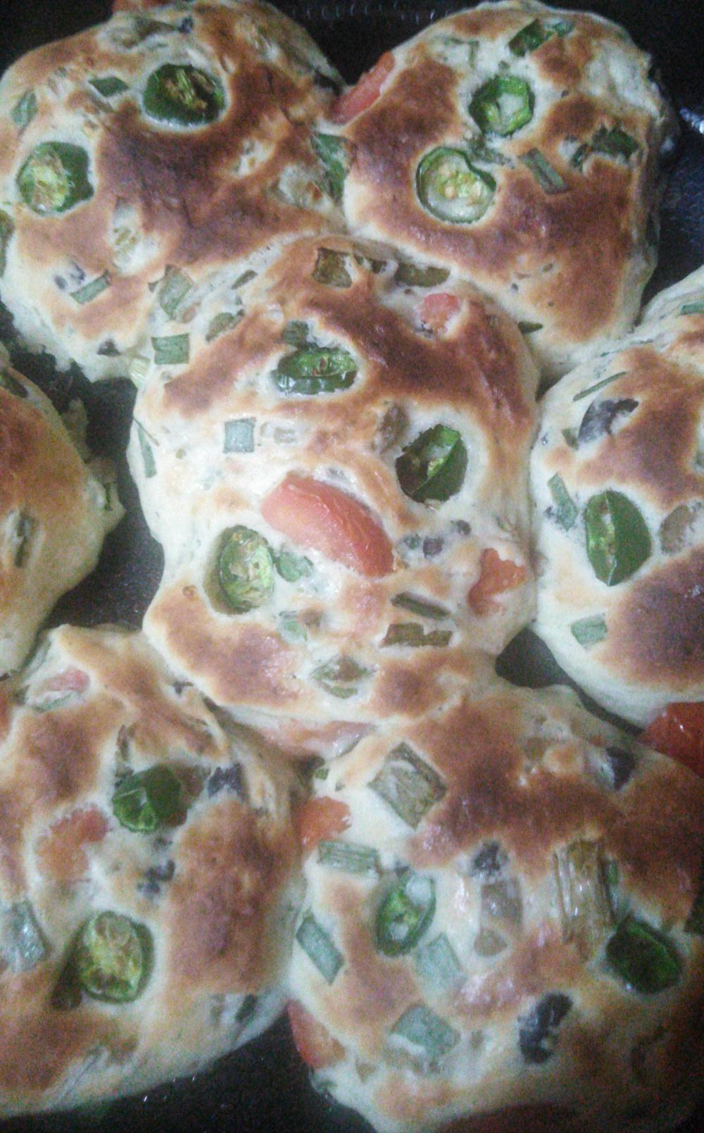 وهنا تركت شويه من العجينه واضفت عليها شوية بقدونس وطماطم بدون اللب وجبن فيتتا وزيتون شرايح وفلفل حار اخضر وبصل اخصر..