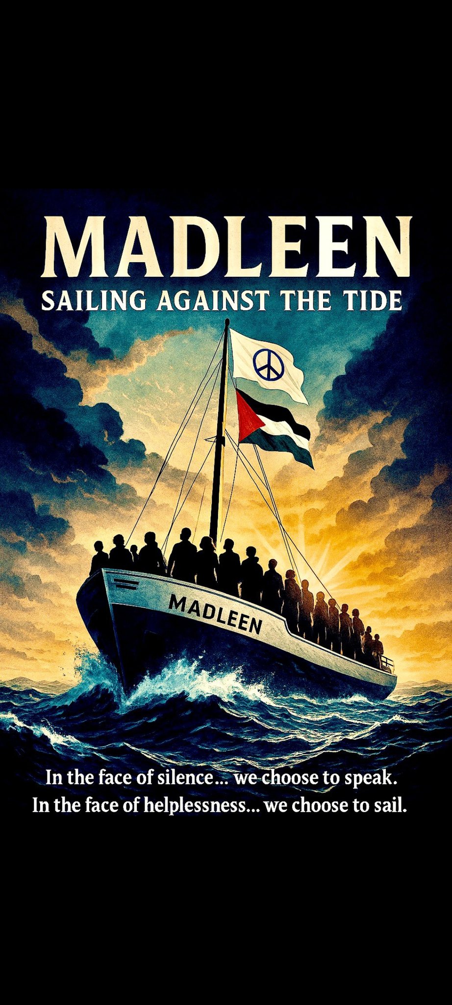 * "سفينة مادلين الإنسانية"😍❤️🌹 وعلى متنها "أشراف العالم❤️💪🏻 وأحرار الروح"🤍🕊 تجري في البحر بقلبٍ كبير من الإنسانية كفلك نوح عليه السلام🚢🤍 لتنتصر وسط هذا الصمت العالمي المؤسف لغزة الحزينة 🇵🇸 🤍... اللهم وفقهم في مسعاهم وبلغهم منانا ومناهم لكسر الحصار الذي دام 17 عام قبل الملام وكثرة الكلام على طوفان الأقصى بأعواااااااااااام!!! واحفظهم وسلمهم من غدر الصهاينة🤍🤲🏻...