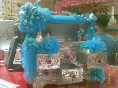 ( بس انتبهي لا تحطي الهدايا والعطور والشبكة في المحل وتمشين لا خليك عنده وهو يثبتها لانها ماتحتاج الا الغراء وخلاص )