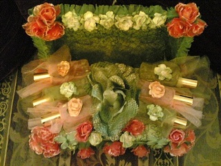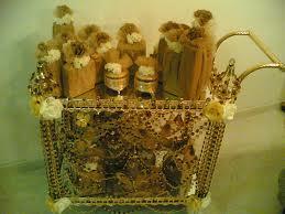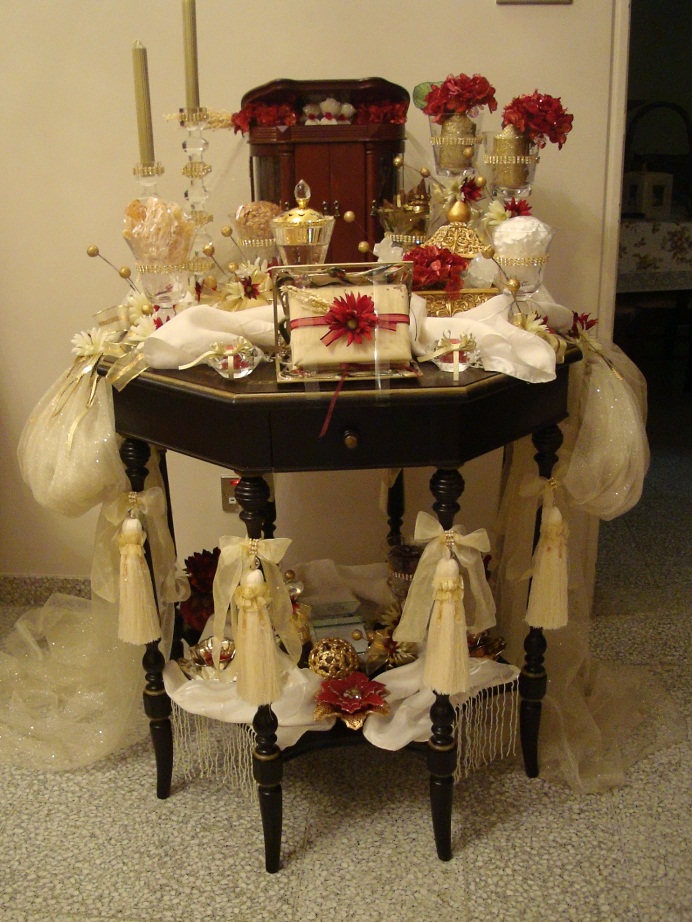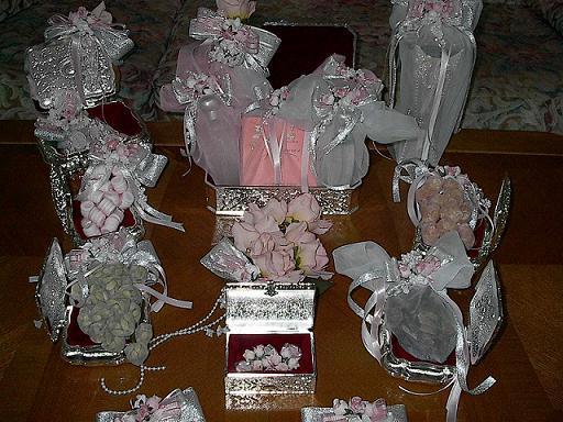 ودبله او خاتم العروس فيه ناس يحطون 2 واحد ابيض وثاني اصفر مع كم نوع عطورات ويكون منوعات يعني فرنسيات وشي بالعود وبخور يكون بعلبه كم حبه وشموع لها ريحه وفيه ناس يحطون فيها علك القديم وشكولاته وصاحب المحل التغليف راح يصلح فيها حركات شموع وورد ولولو ويغلفا