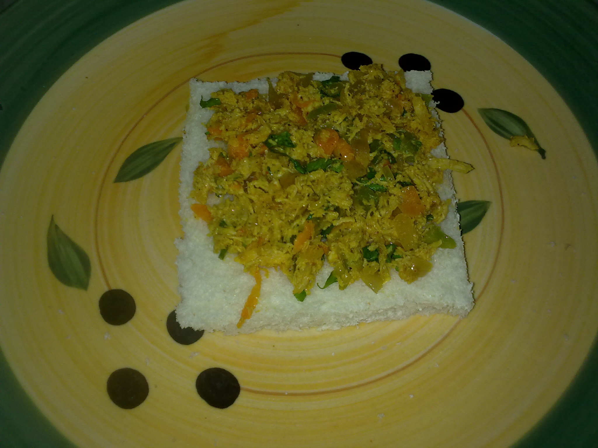 هذا الله يسلمكم بعد ماتعشوا أولادي بدري وناموا عشان المدرسة (الله يحفظهم)،،،جلست أفكر ايش اسوي عشاء بسيط من الأشياء الموجودة في البيت، دخلت المطبخ لقيت خبز التوست (حق المدرسة)،فتحت الفريز لقيت شريحتين من صدور الجاج،فخطر في بالي على طول.