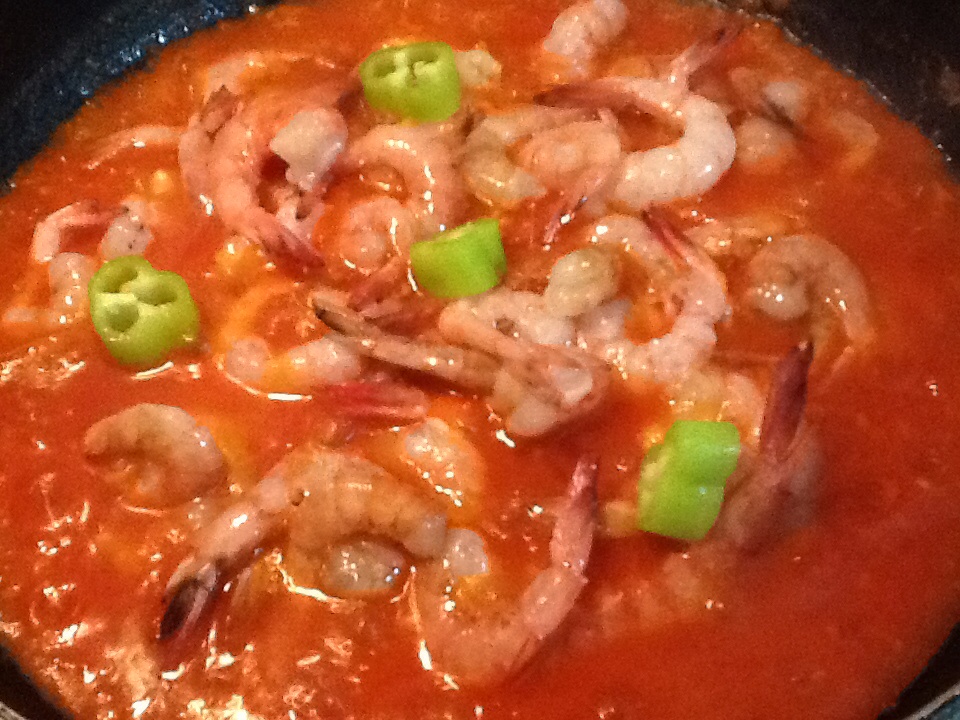 هذا الربيان بصلصة الطماطم قدميه مع رز ابيض نسيت أصور قبل التقديم