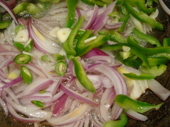 نحمس البصل والثوم والفلفل النوعين