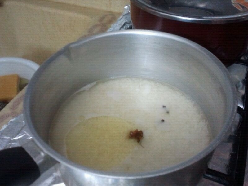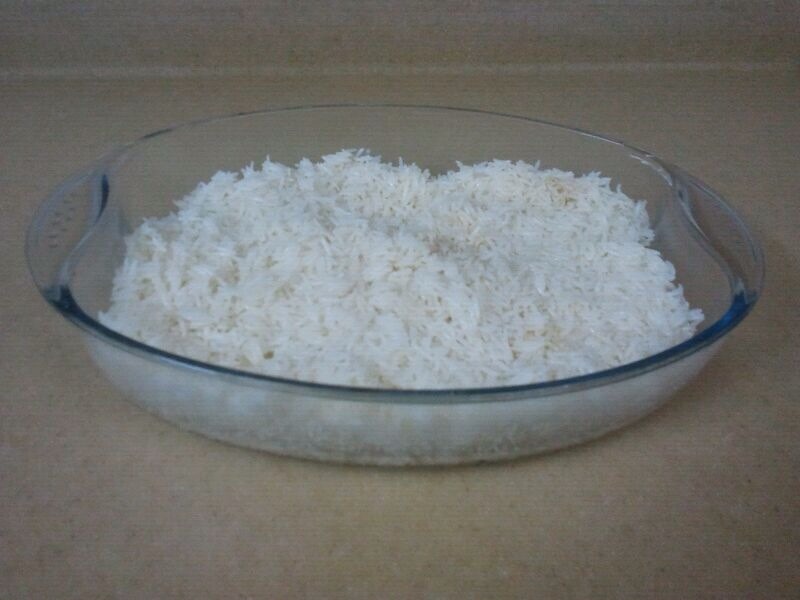 ونسلق الرز ابيض عادي مع ملح وزيت