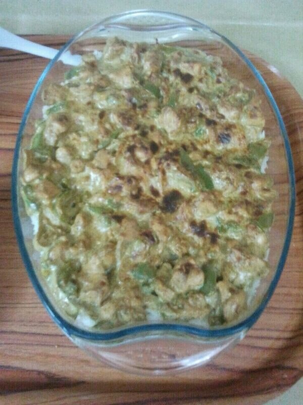 وندخلها الفرن تتحمر من الاعلى وفي هذي الاثناء نروح نحضر السلطه خلوكم معايه