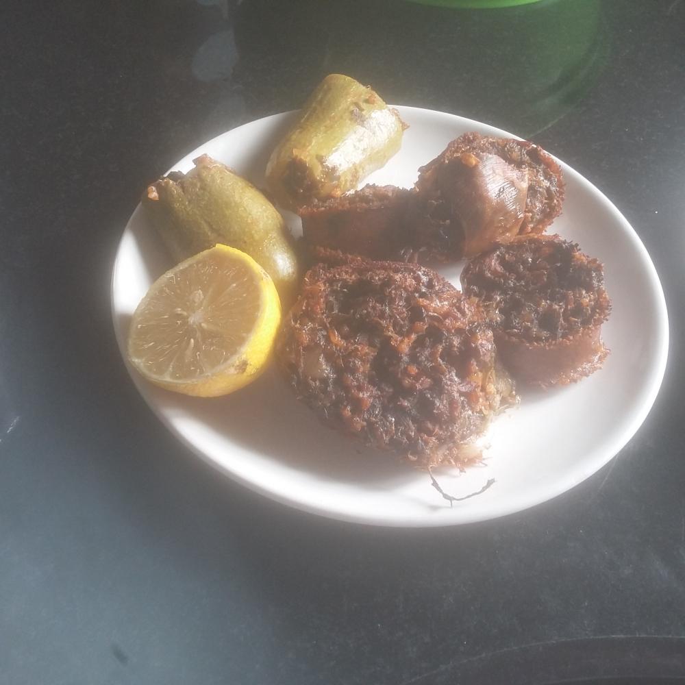 المقادير...أحشاء حروف الي هيا الكرشة منظفة و مغسولة بناء و ليمون و ملح ... و انا عادة اقوم بعملها كالجيوب ..أتمنى الصورة توضح قصدي