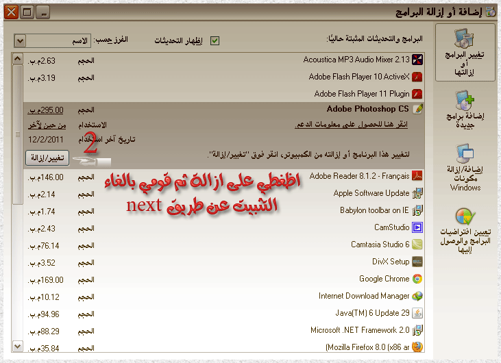 وبغيتي تثبيته ومانفع معاك لان الثامن ثبتيه بالجهآز والجهــآز مايثبت الا اصدآر واحد فقط للفوتوشوب .