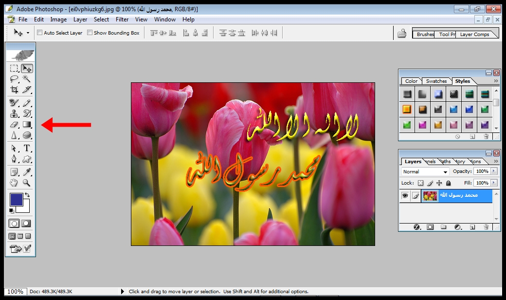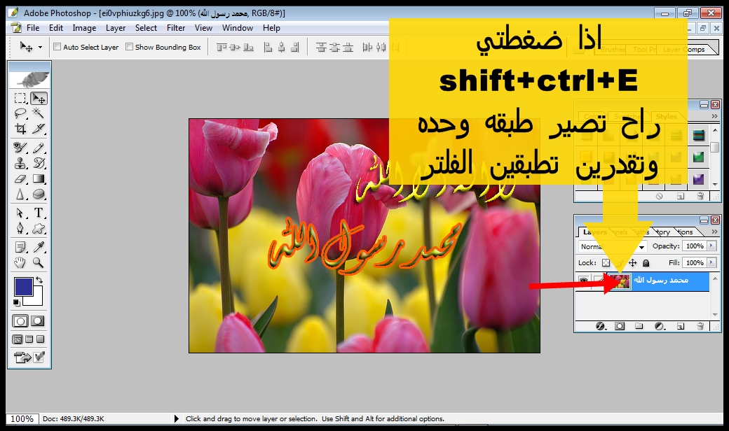 مع بعض وراح تشوفين الطبقات صارت طبقه وحده طبقه الصوره وطبقه النص وطبقة الستايل وبعدها طبقي الفلتر