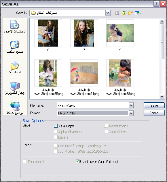 ثم آكتبي اسم عملك ثم آختاري صيغة bng واحفظي عملك .