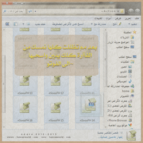 - تفتحيِ مججَلد الاكشننَ وتسسحبيههَ ،‘