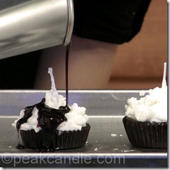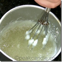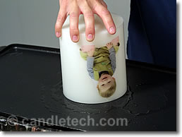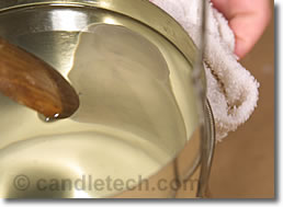 6 - يترك الشمع حتى يبرد قليلاً ويكون طبقة صلبة في الأعلى .