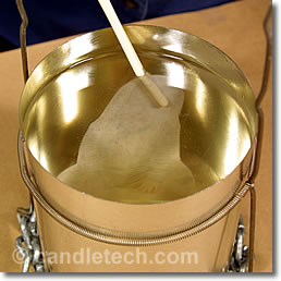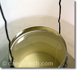 يذاب الشمع كما تذاب الشيكولاتة فيما يعرف (بالحمام المائى) والطريقة المتبعة فى ذالك أن نحضر أناء كبير ونضع بداخلها ماء ثم نضع بداخل الماء علبة من الصفيح يحدد حجمها حسب كمية الشمع المطلوب إذابتها ثم نشعل عليها النار وتترك حتى تذوب تماما