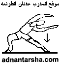 3- ثني الجذع أمامًا أسفل ولصق الكفين خلف الرجل الأمامية.