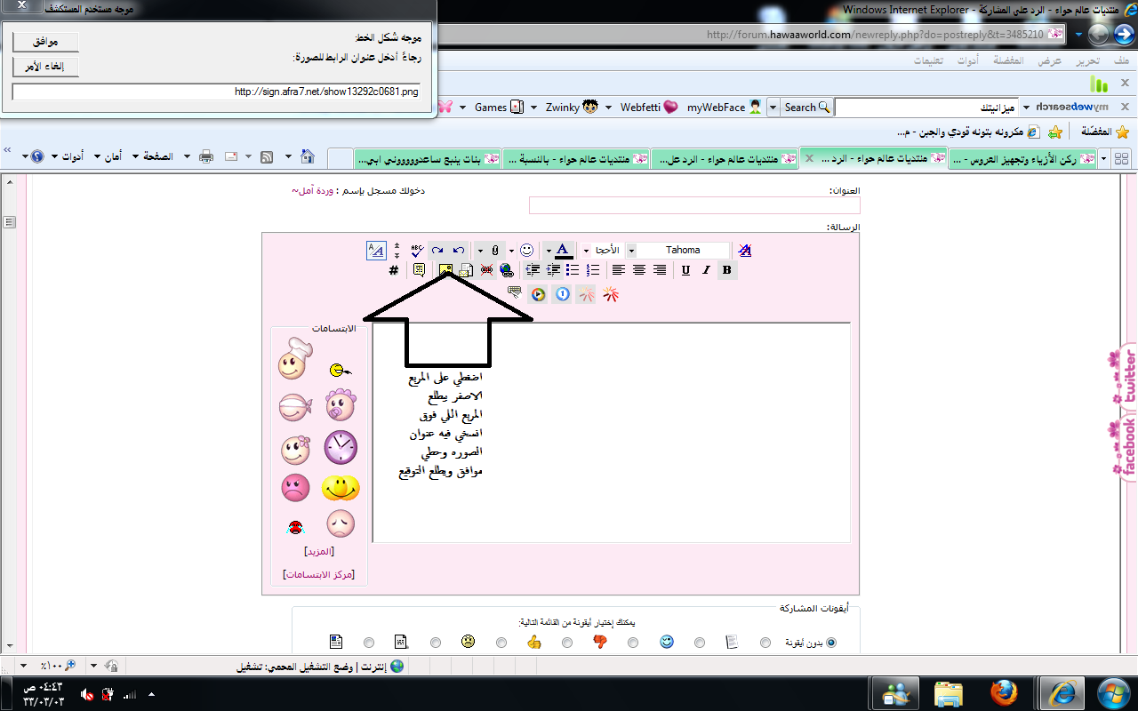 انسخيه وروحي لتعديل التوقيع واضغطي على مربع الصصوره اللي لونه اصفر