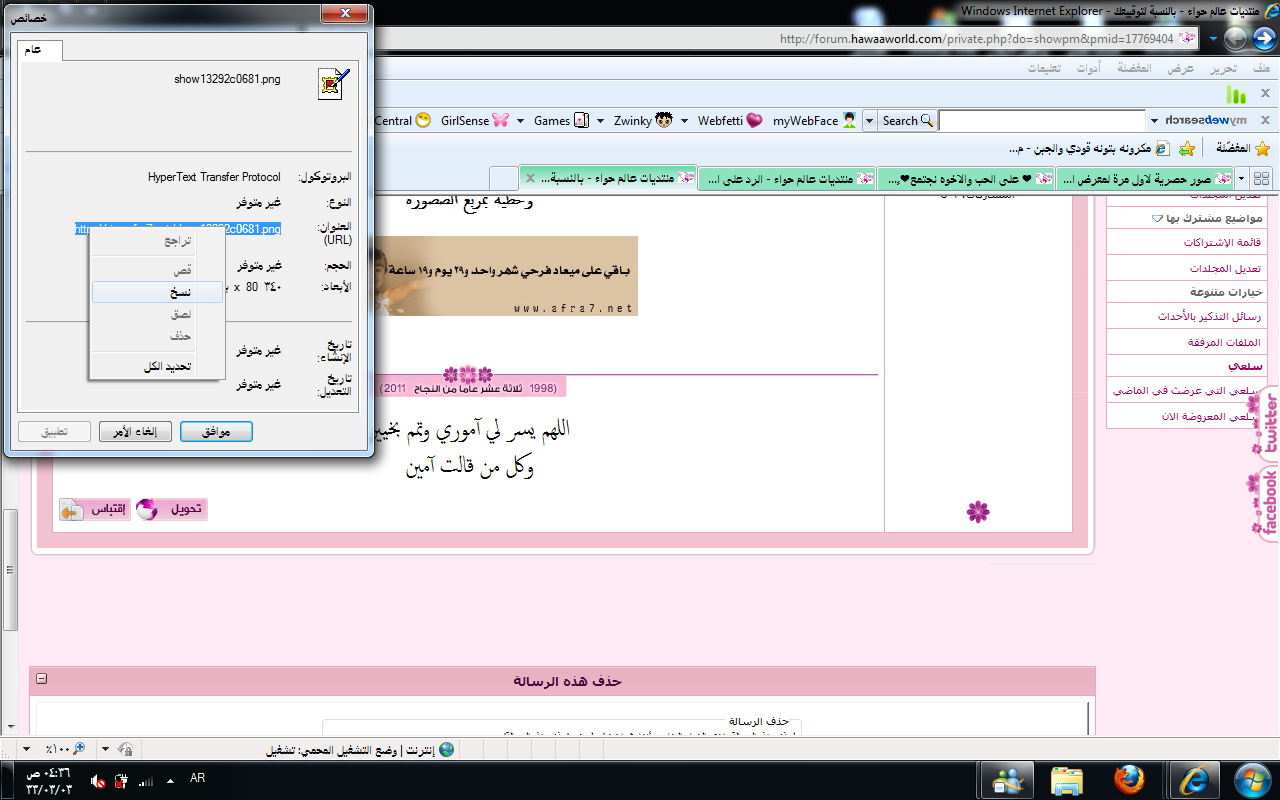 اذا ضغطتي على خصصائص يطلع لك هذا المربع سوي نسخ للعنوان