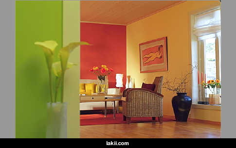اختاري الالوان المستخدمة في المنزل لتتكامل مع بعضها البعض بحيث يمكنك الانتقال من غرفة الى غرفة من دون ادنى احساس بنفور لوني ظاهر، إما من طلاء الجدران او الوان الاثاث وخاماتها.
