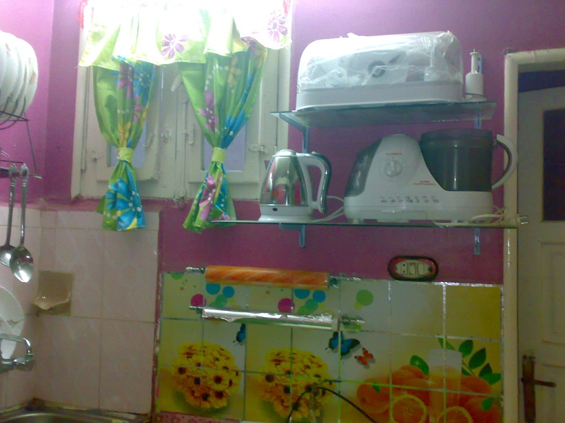 طبعا انا كنت محتاجه لون يليق على الفوشيا لون الحيطان ودورت في دايره الالوان لقيت الاصفر والاخضر التفاحى قولت الاخضر هيبقي تحفه ومطرقع