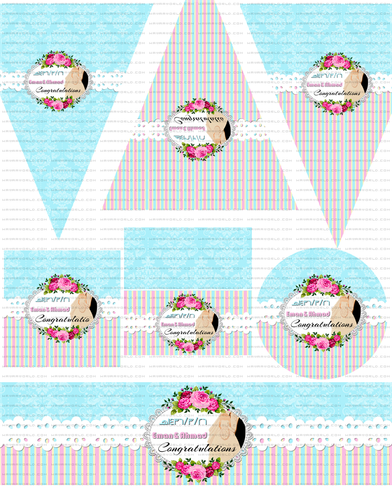 الطلبات : كرت دعوة - علب مويه - كب كيك - مزازات - مثلثات الزينه- كرت يوضع على الطاوله