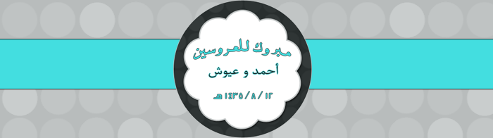 السلام عليكم يعطيك العافيه ع المجهود الرائع أبغى منك خدمه بسيطه تسويلي ثيم لمناسبة زواج الألوان المطلوبة 43DEE0+252B2B + C3C7C7 بالإضافة للأبيض أبي أعواد الكب كيك +المويه+تغليف مناديل+اعلام المصاصات+فوينكات العباره: مبروك للعروسين احمد&عيوش التاريخ:12/8/1435 والله يقويك ومشكوره مقدماالسلام عليكم يعطيك العافيه ع المجهود الرائع أبغى منك خدمه بسيطه تسويلي ثيم لمناسبة زواج...
