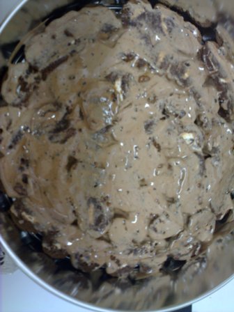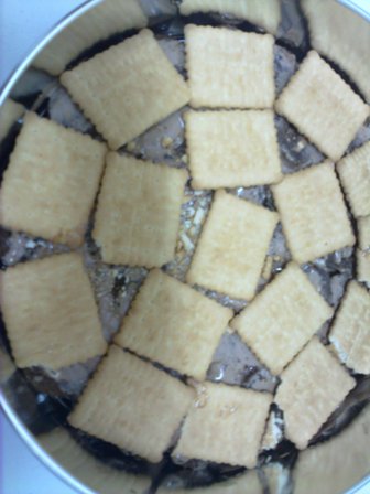 وبعدها نصبها على البسكوت وندخل الصينية الثلاجة
