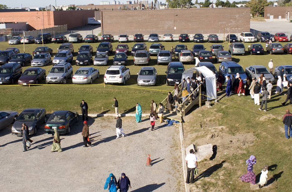 هذه صور من صلاة العيد بمسجدنا (واحد من بين خمس مساجد قريبين من بعض يمكن بيناتهم 6 دقائق بالسياره فقط وكل واحد نفس العدد تقريبا أو اكثر اللهم زد وبارك (المسلمين صاروا بتورنتو أكثر ديانه وأكثر عدد )