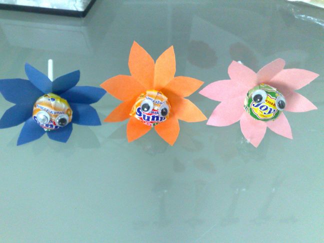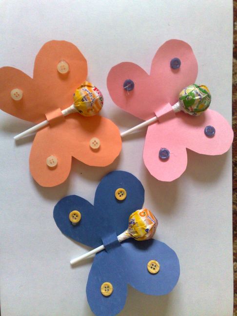 تجيبيين الورق المقوى وتقصينه ع ششكل فراششه وتجيبيين مصاصه وتحطينها ب النص بحيث تكون كأن رأس المصاصه رأس الفراششه وتحطيين ع ـالجوانب ازرار لتزيين الشكل مثل اللي فَ ـالصصوره :-
