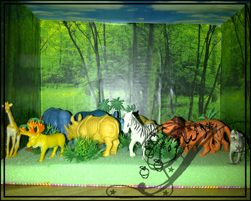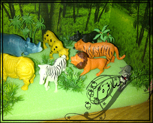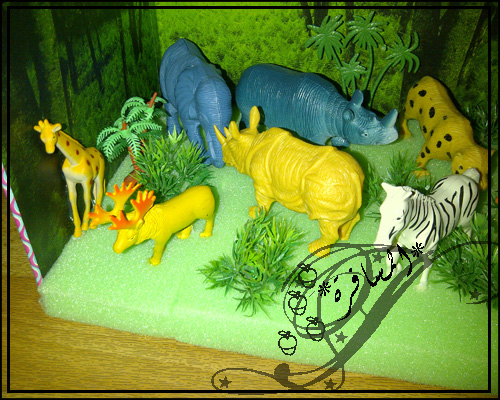 من فترة طلبت معلمة بنتي يجيبون منطقة مصغرة.. طبعا اخترت الغابة لأنها أسهل شي والحيوانات الصغيرة متوفرة بكل مكان..