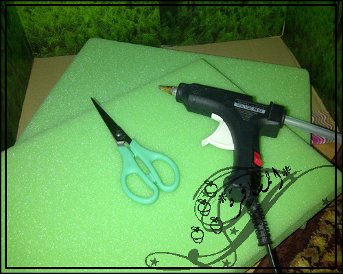 مع مسدس الشمع.. والمقص والصمغ السائل.. والفلين للأرضية وورق جلاد لتجليد الكرتون أو الصندوق من الخارج..