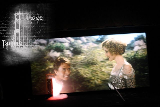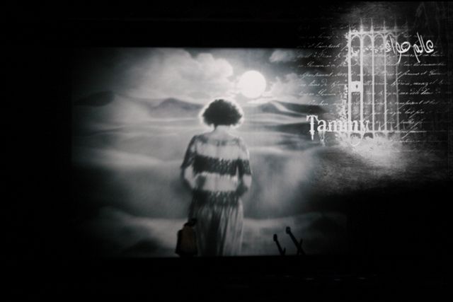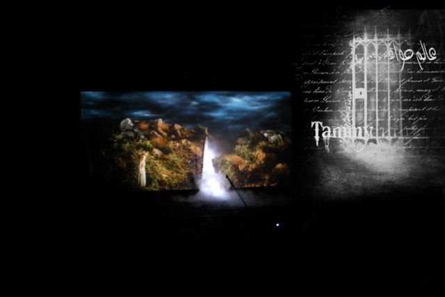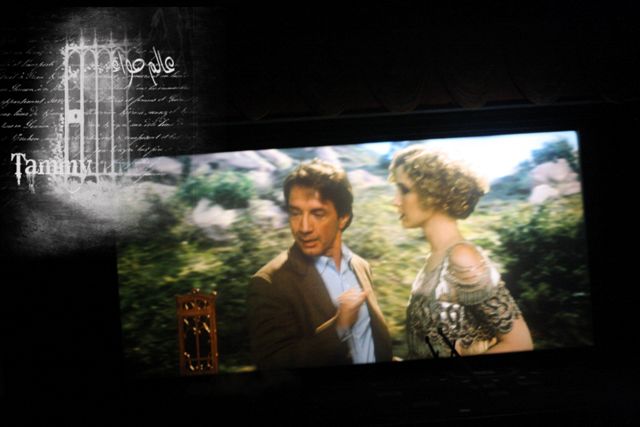 وهم يمثلون واحد من الممثلين فر السيف فالفلم .. جان تنطر الشاشه ويطلع السيف ع المسرح