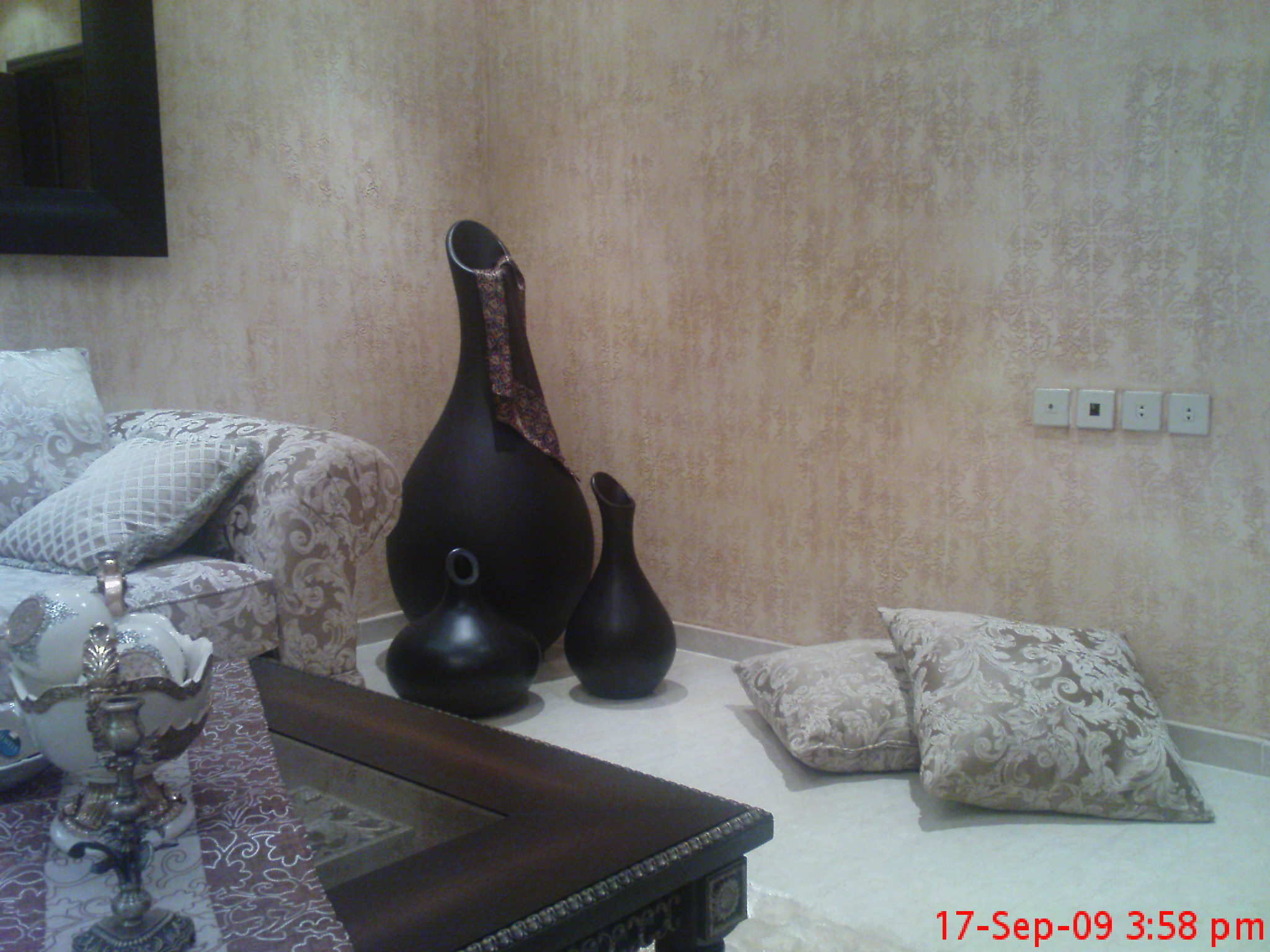 اذا عندك فازات حلوة وحجمها مناسب كمان ممكن تستخدميها مع خداديتين او اكثر وفوقهم على الجدار ساعة مثلا او منظر ناعم (ممكن تستغني عنه ) .... شوفي الصورة