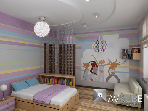 أما بالنسبة للجدار اللي حابة تسوينه مقلم أنا أنصحك ما تدخلين لون ثاني سويه موف درجتين فاتح وغامق يطلع احلى .. ولو حابة سوي ورق جدران في جدار اللي يكون وراء السرير وباقي الجدران بلون بنفسجي فاتح