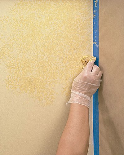 يبدئ في زاوية .. يطبق لون بتلطيخ الإسفنج على السطح إلى أن يؤثّر المطلوب عليه