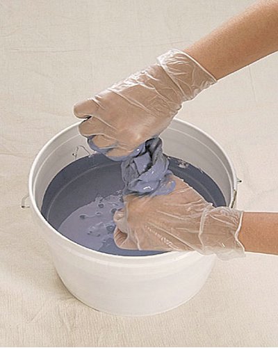 غطس قطعة القماش مبلله ماء في لون الصقيل واعصر الزيادة