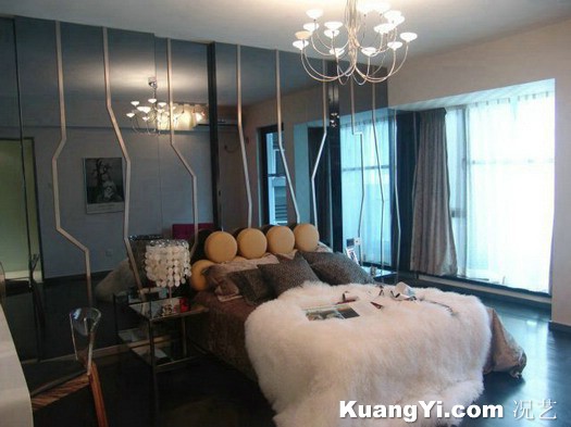 (6) جدار السرير بلون مختلف مزين برف ولوحه ..فكرة شبابية