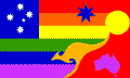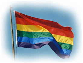 هذا شكل العلم حين وضعوه شعارهم لأول مره فى 1978 فى سان فرانسيسكو الحين اتعدل وشالوا منه اللون البنك (الورد) واللون السماوى