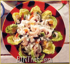 3 - اسكبي خلطة الماينيز عليه بعد وضعه في صحن التقديم وزينيه بورق الخس