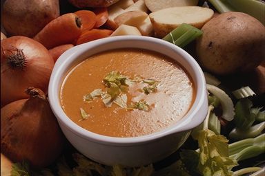 المقادير: 400 جرام زبدة، 3 كراث مقطع، 600 جرام بطاطا مقطعة، 750 مل مرق خضار، 400 جرام فيليه سمك، 450 مل حليب، بصل أخضر مقطع للتزيين.