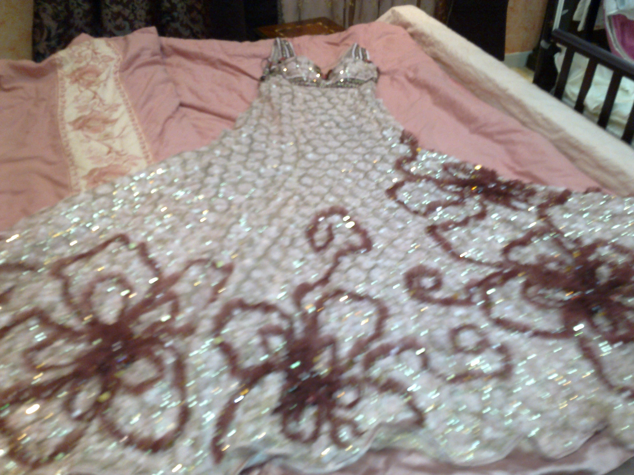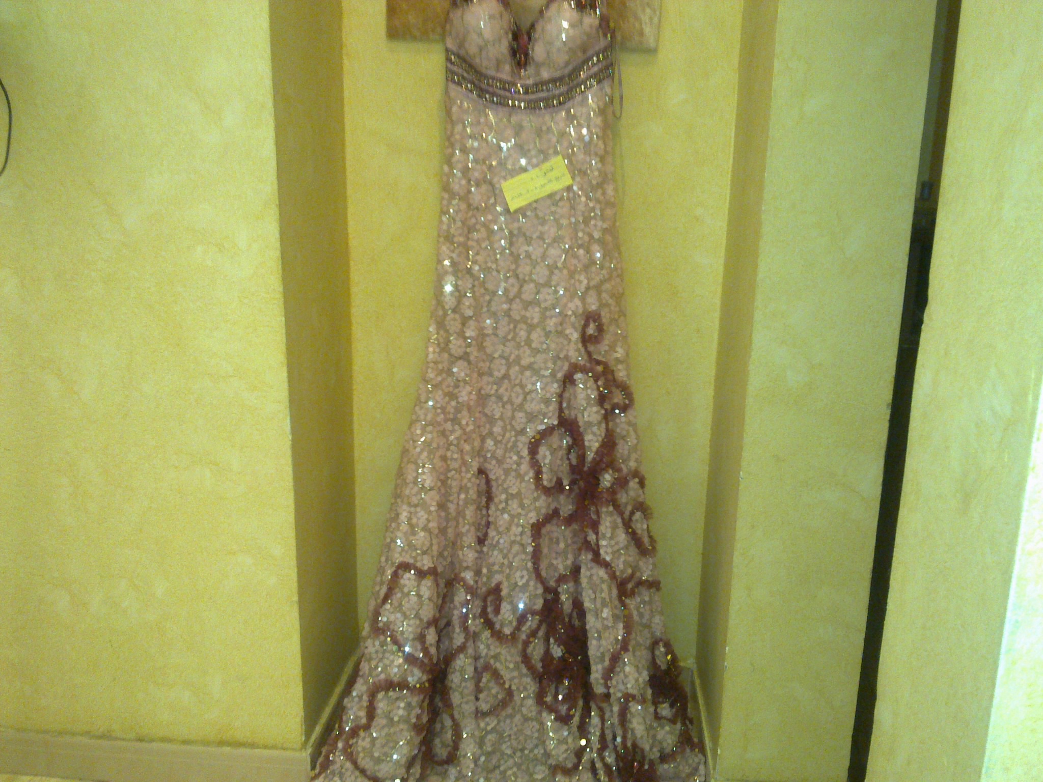 الفستان ا لأول لونه وردي فاتح مشغول كله بالحراشف مقاس 10 مديم معاه شال تل نفس لون القماش الفستان مرره فخم ابغي فيه 800ريال
