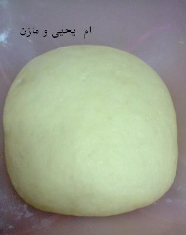 و هنمسح المستطيل بذبدة سايحة او زيت و هنرش سكر خفيف و نلفه رول ...و نلزق حرف المستطيل فى نفسه و تكون لتحت
