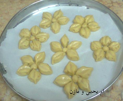 مكونة البتلات بتاعة الوردة و كل وردة هتاخد 5 بتلات ...و من بواقى العحينة اللى ساويت بيها مستطيل العحينة .اعمل كور صغيرة فى نص الوردة عشان دى اللى هحط عليها المربى بعد ما تطلع من الفرن ان شاء الله... ** هنا عملت كل العجين وردات بالشكل ده و رصتها على ورق زبدة افضل ...و لو مافيش ورق زبدة عادى ..ادهنى الصنية زيت و رصى الوردات بتاعتك بس خلى بالك و انتى بطلعيها من الصنية بعد السواء طلعيها براحة خالص **و طبعا سبتها ترتاح فى الصنية نص ساعة متغطية بقماشة او فوطة نظيفة و اشغل الفرن قبل ما ادخل الصوانى ب5 دقايق على نار فوق المتوسطة و الافضل طبعا انى امسح وش الورد بالبيض و الفانيلا اووو الحليب ..عشان يدينى لون حلو بالشكل ده ..