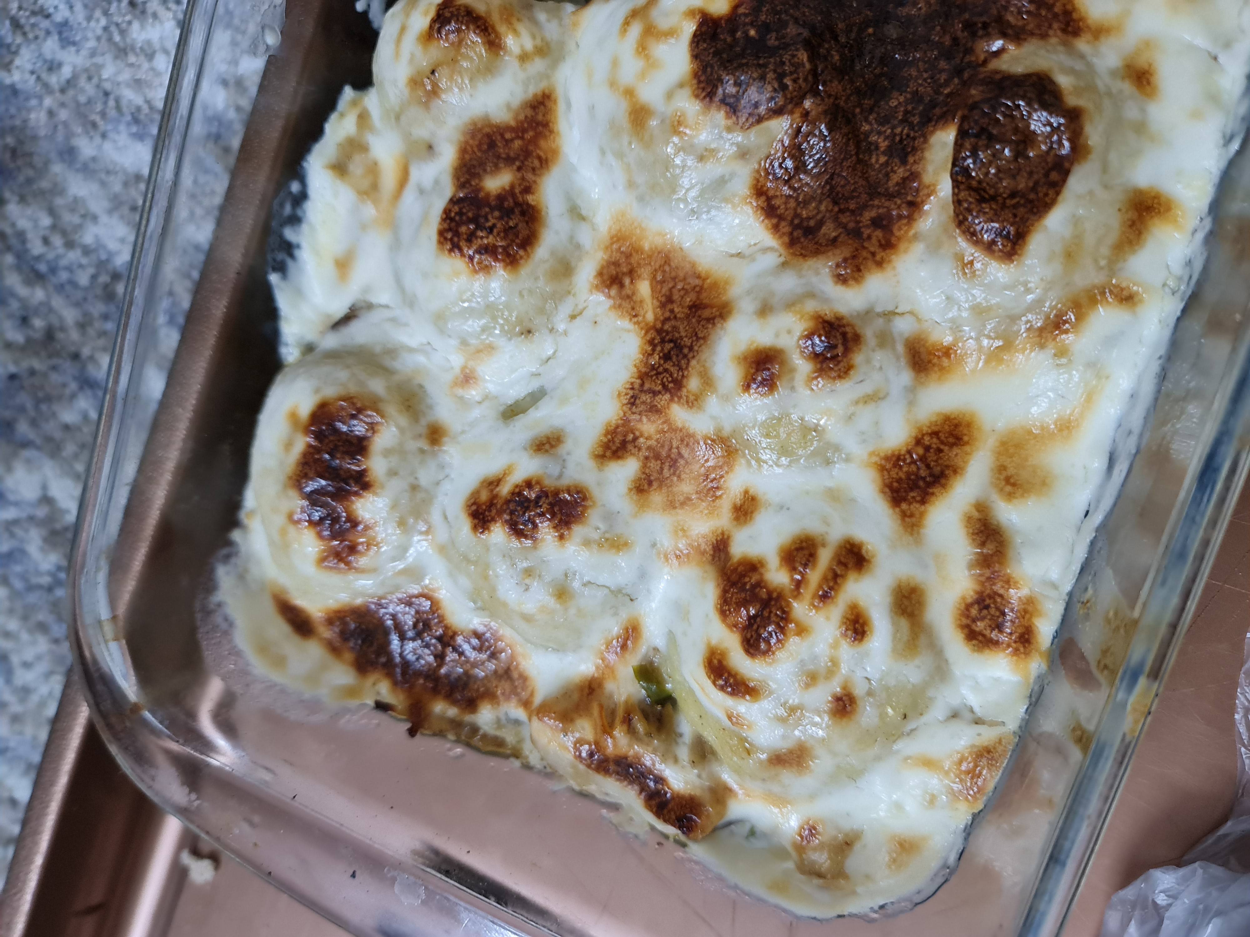 تخلط المقادير نصبها في صينيه مدهونه شوي زيت