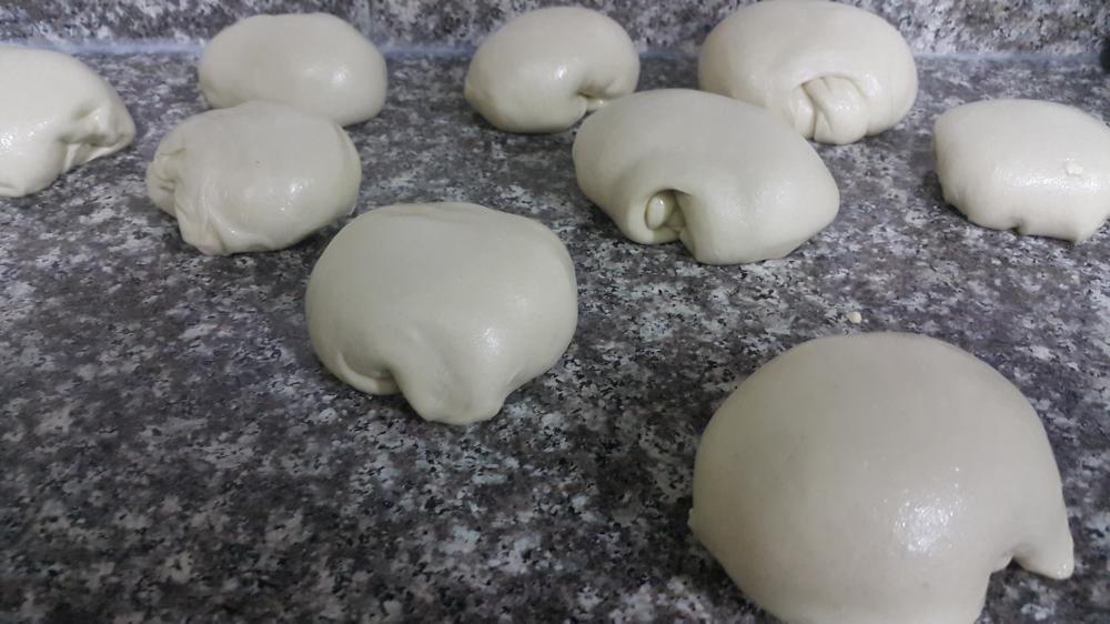 الآن نفرد كل كرة قليلا ونحشيها بأي حشوة تحبيها