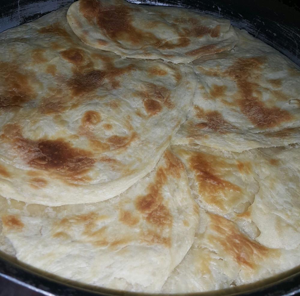 افردي اول قطعة وضعيها في الصينية وادهني زبدة ثم واحدة أخرى وضعيها فوق الأولى .. هكذا إلى أن تضعي أربع طبقات ثم اغلقيها. . اتركيها في الصينية ترتاح ثم ارجعي افرديها وهي بالصينية قليلا .. ثم اخبزيها