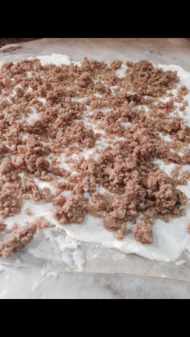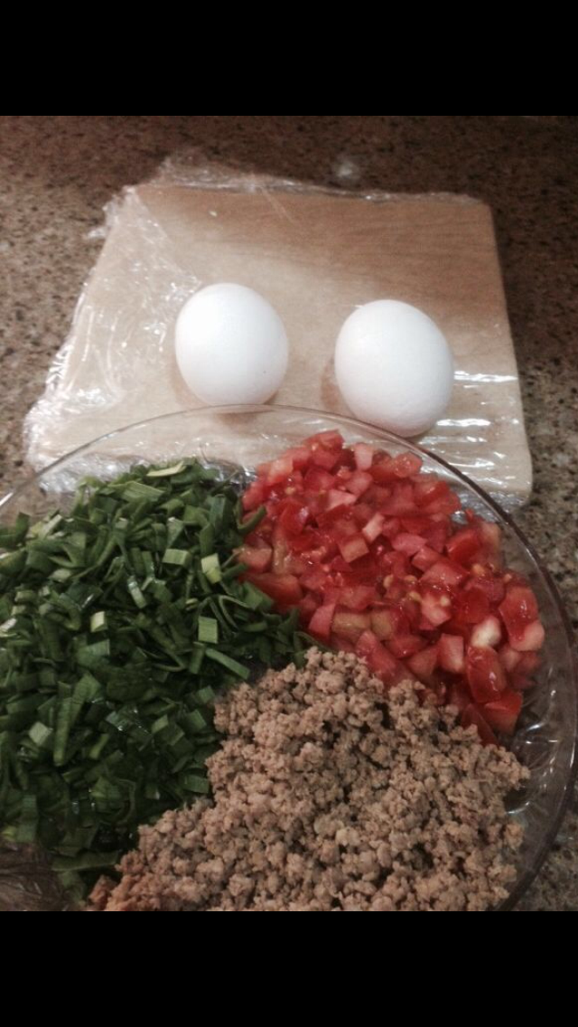 خذي جزء من الحشوه وضعي عليها بيضه