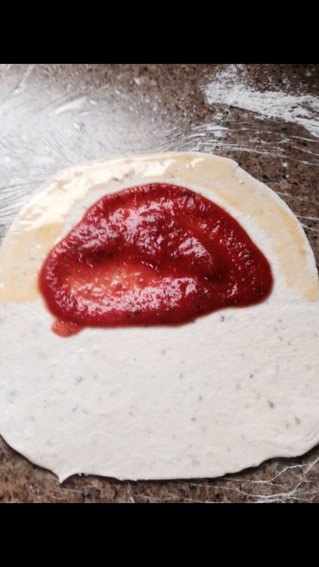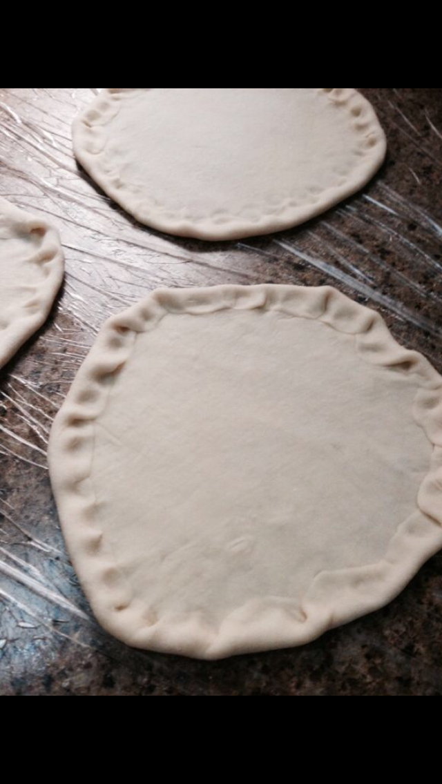 وضعي عليها كره من العجين افرديها ثم اسحبي بيديك طرف العجينه
